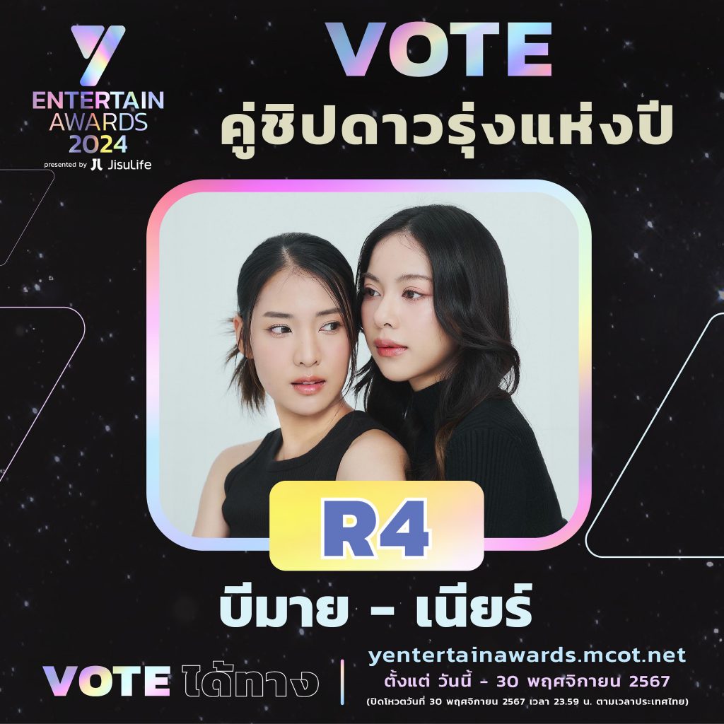 โดยสามารถร่วมโหวตเพื่อเป็นกำลังใจ แรงใจ ให้กับผู้เข้าชิงสาขารางวัล Rising Star Couple of the Year (คู่ชิปดาวรุ่งแห่งปี) ได้ทาง https://yentertainawards.mcot.net/vote
