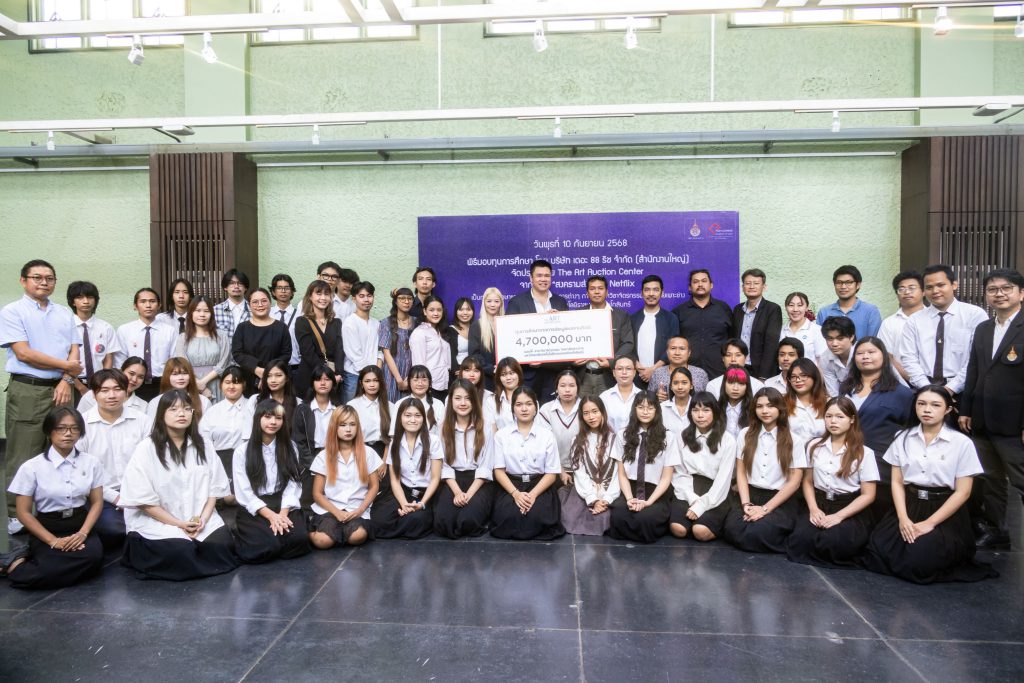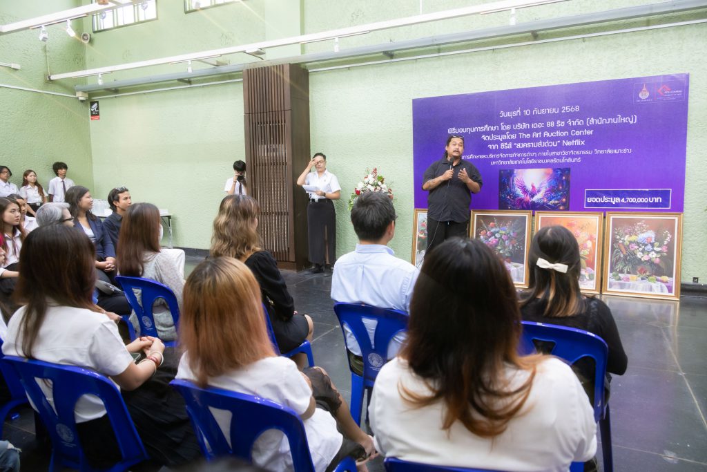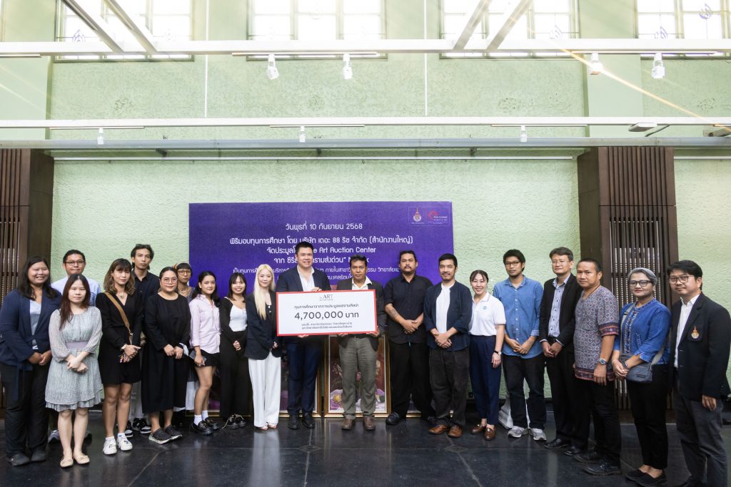 ในส่วนของภาพวาดชุด “นกกระเรียนกลางทะเล” ที่สื่อความหมายถึง การต่อสู้ฝ่าฟันและการดิ้นรนของชีวิต ปิดประมูลไปจำนวน 2,900,000 บาท ซึ่งมอบเป็นทุนการศึกษาให้แก่คณะสถาปัตยกรรม ศิลปะและการออกแบบ สถาบันเทคโนโลยีพระจอมเกล้าเจ้าคุณทหารลาดกระบัง โดยได้รับเกียรติจาก คุณพิริยะ วัชจิตพันธ์ ผู้ก่อตั้ง The Art Auction Center , คุณณฐพล บุญประกอบ ผู้กำกับซีรีส์สงครามส่งด่วน, คุณภควัต สุพรรณขันธ์ ผู้อำนวยการฝ่าย Production Management Southeast Asia and Chinese Language บริษัท เน็ตฟลิกซ์ (ประเทศไทย) จำกัด และคุณชนม์ธนัทกรณ์ อยู่ชยันตี ผู้อำนวยการฝ่ายองค์กรสัมพันธ์ บริษัท จีดีเอช ห้าห้าเก้า จำกัด เป็นตัวแทนมอบทุนการศึกษา โดยมี ผศ.ดร. อันธิกา สวัสดิ์ศรี คณบดีคณะสถาปัตยกรรม ศิลปะและการออกแบบ พร้อมด้วยคุณพงศธร มณีประพันธ์ ศิลปินผู้สร้างสรรค์ผลงานภาพวาดชุด “นกกระเรียนกลางทะเล” เป็นตัวแทนในการรับมอบทุนการศึกษาในครั้งนี้