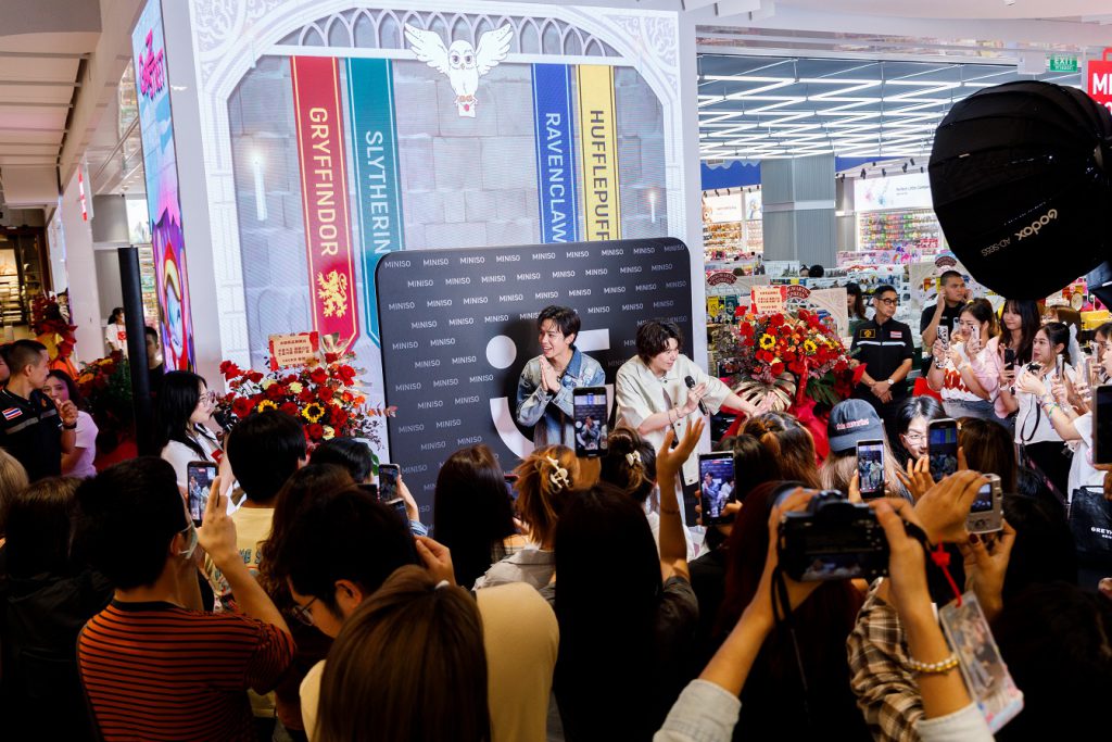 จากนั้นบรรยากาศในงานก็เต็มไปด้วยความน่ารักและเป็นกันเอง เมื่อ ‘เติร์ด-ลภัส งามเชวง’ และ ‘แจ๊คกี้-จักริน กังวานเกียรติ’ ปรากฏตัวเพื่อร่วมสร้างสีสันและพูดคุยอย่างใกล้ชิดกับแฟนๆ โดยพวกเขาได้แชร์ไอเทมชิ้นโปรดจาก MINISO ให้ทุกคนได้ฟัง