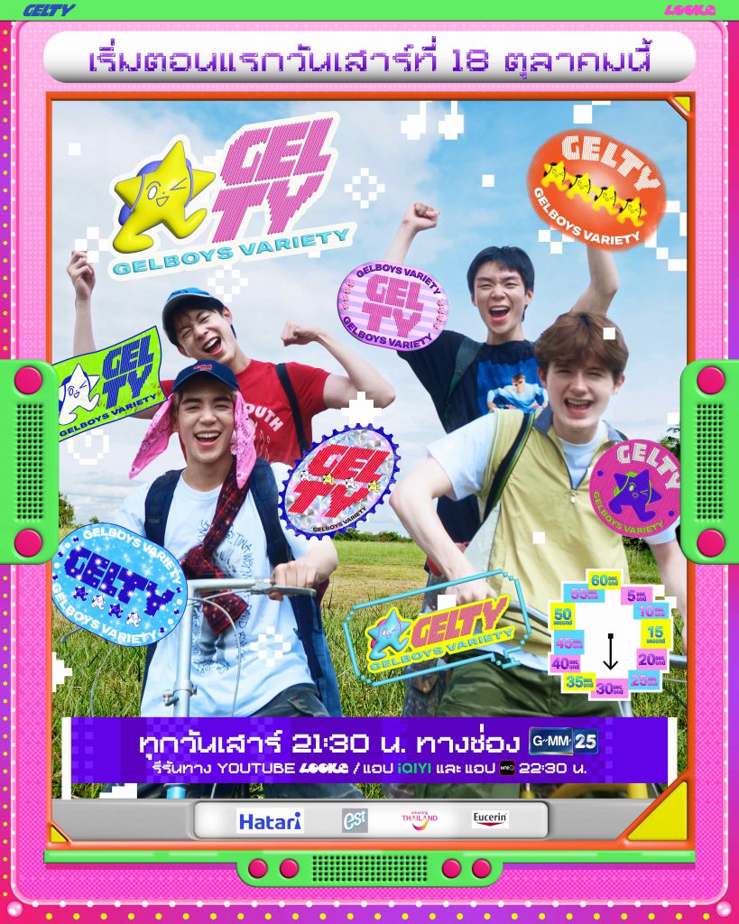 เตรียมฟิตเช็ก แพ็กกระเป๋า ออกเดินทางไปพร้อม ๆ กันได้ในรายการ GELTY (GELBOYS VARIETY) เริ่มตอนแรกวันเสาร์ที่ 18 ตุลาคมนี้ ทุกวันเสาร์ 21:30 น. ทางช่อง GMM25 รีรันความสนุกอีกครั้งทาง YouTube LOOKE / iQIYI / oneD เวลา 22:30 น.