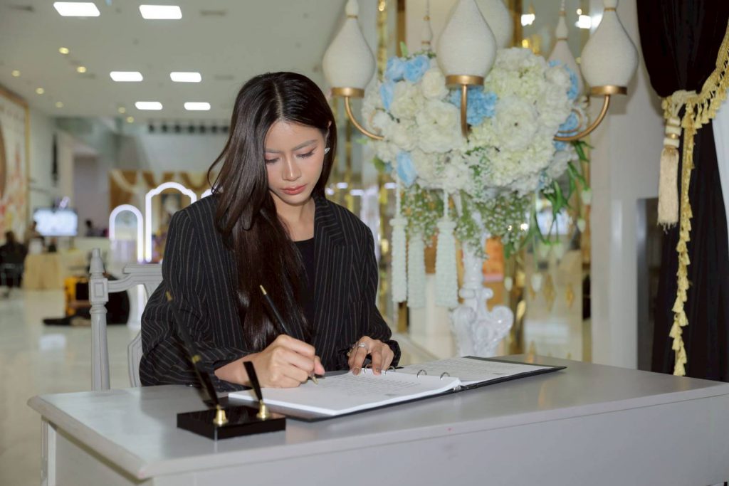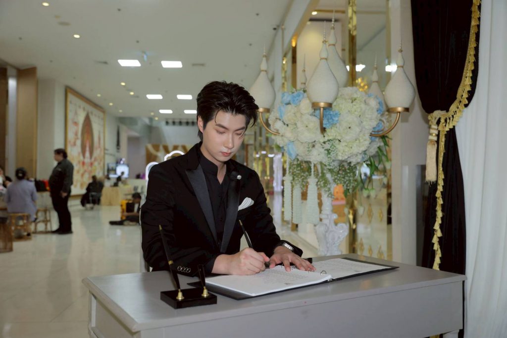 หลังเสร็จงานแถลงข่าว ทั้งคู่เห็นมีบูธกิจกรรมประดิษฐ์ริบบิ้นสีดำ จึงไม่รอช้า ขออาสาร่วมกิจกรรมดังกล่าวทันที และยังได้ลงนามถวายความอาลัยแด่ สมเด็จพระพันปีหลวง ด้วย ซึ่ง ริบบิ้นสีดำ ที่ทั้งคู่นร่วมกันทำจะนำไปแจกจ่ายให้กับประชาชนทั่วไป