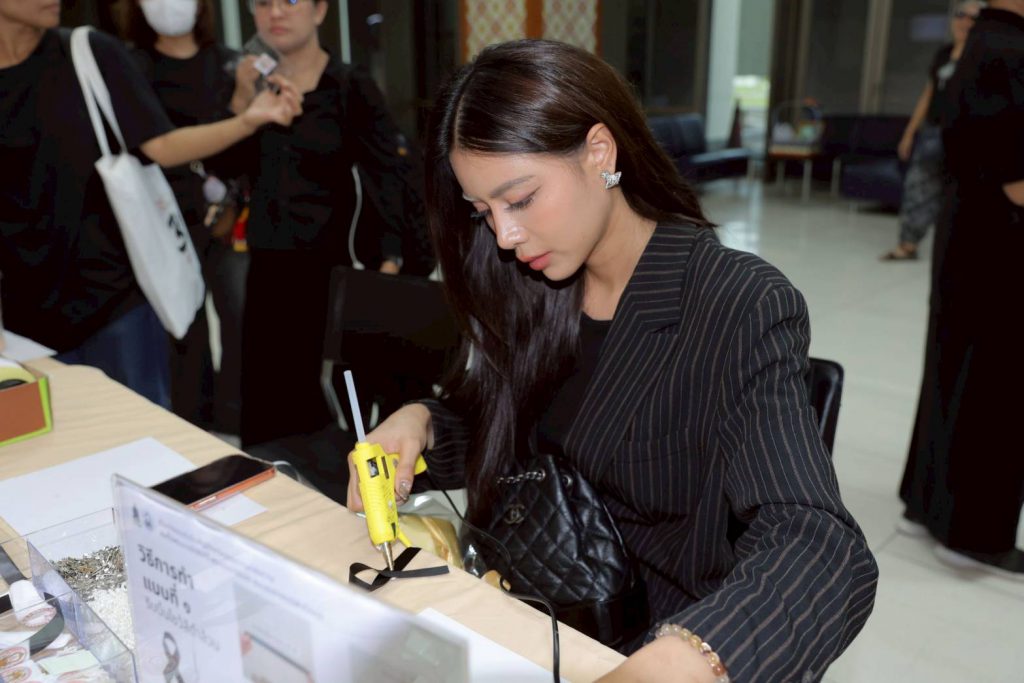 บิว-ลลิฉัตร์ วราวิโรจน์พล และ คีธ-กรินทร์ กนกวลีวงศ์ สองนักแสดงจากซีรีส์แนวตั้ง “ปานดวงใจSignature” ขอทำหน้าที่ “นักแสดงจิตอาสา” ร่วมกิจกรรมประดิษฐ์ริบบิ้นสีดำ แสดงความอาลัย สมเด็จพระนางเจ้าสิริกิติ์ พระบรมราชินีนาถ พระบรมราชชนนีพันปีหลวง ด้วยน้อมสำนึกในพระมหากรุณาธิคุณอันหาที่สุดมิได้