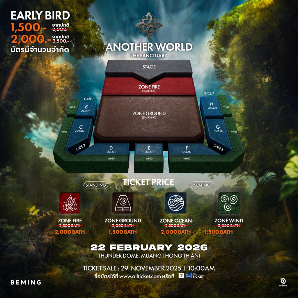ประกาศศักดาอย่างยิ่งใหญ่ "ANOTHER WORLD: THE SANCTUARY CONCERT" งานที่จะพาคุณเดินทางผ่านประตู Sanctuary ไปสู่ค่ำคืนแห่ง "Another World" ในวันที่ 22 กุมภาพันธ์ 2569 ที่ Thunder Dome เมืองทองธานี โดยสามารถกดสั่งซื้อบัตรได้แล้วทาง ALLTICKET หรือที่ Counter Service All Ticket 7-Eleven ทุกสาขา พร้อมกันวันที่ 29 พฤศจิกายนนี้