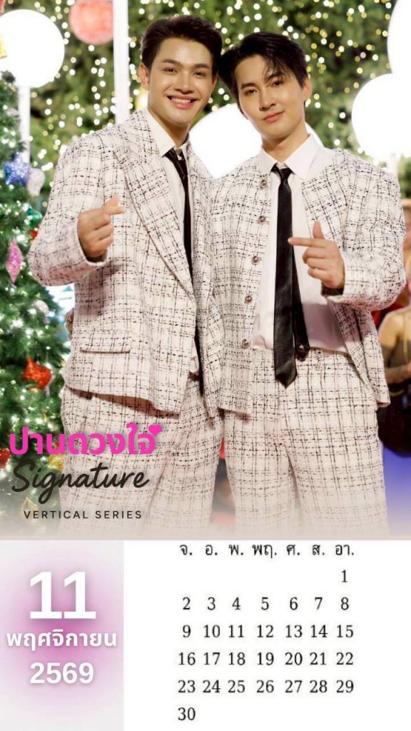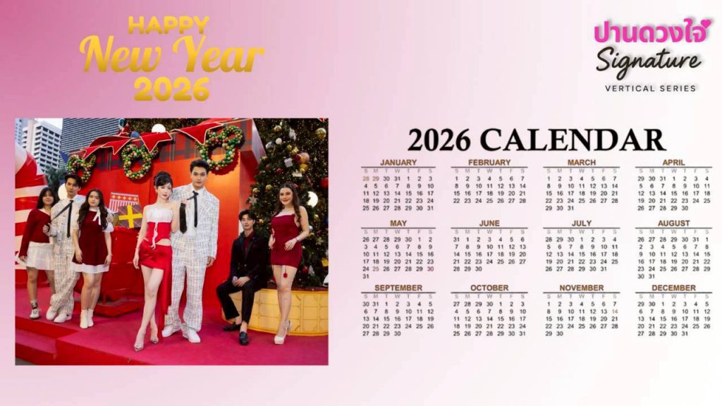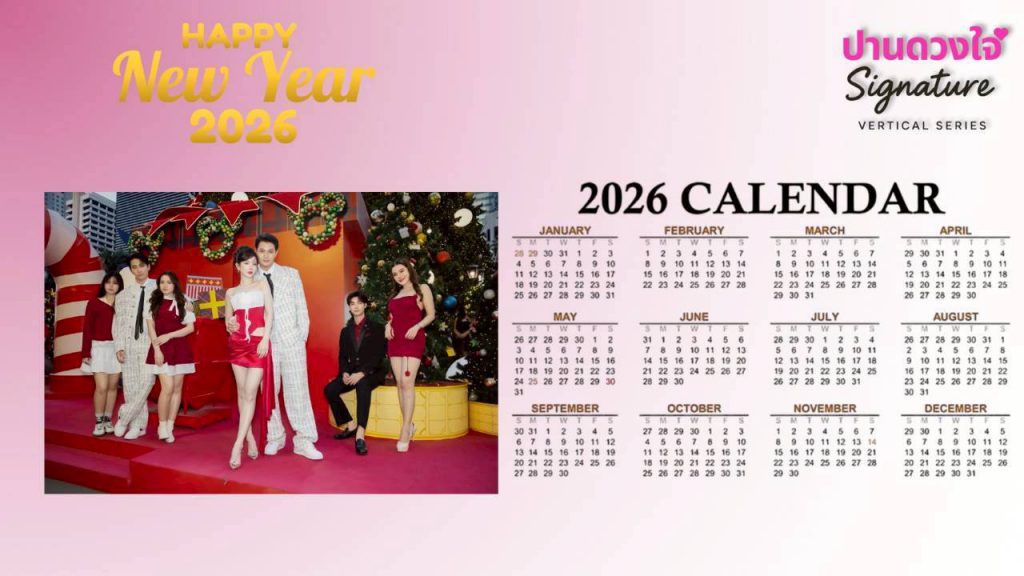 เหล่าทีมนักแสดงซีรีส์แนวตั้ง “ปานดวงใจ Signature” นำทีมโดยนางเอกหน้าหวาน เกลิน-ธัญรดี ก็ชักชวนเพื่อนๆ นักแสดงในเรื่อง อาทิ เล้ง-ณัฐพล, แสตมป์ พรวศิน, ปิ๊งปิ๊ง-รภัทร, คีธ กรินทร์, พรีเมียร์-ศรัญญา และ วายุ-วายุมันตรา มาร่วมส่งมอบความสุขในเทศกาลคริสต์มาส และส่งท้ายปีเก่า ต้อนรับปีใหม่ด้วย “ปฏิทินออนไลน์” สีสันสดใสให้แฟนๆ หรือชาวด้อมมาโหลดเก็บไว้เป็นที่ระลึก แต่ละคนแต่งองค์ทรงเครื่องกันแบบจัดเต็ม และสดใส ใครเห็น ใครมองเป็นต้องเผลออมยิ้ม หรือแอบยิ้มกว้างๆ ในความสดใสของพวกเขาและเธอ