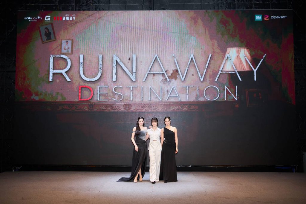 RUNAWAY หนีไปก็ตายเปล่า ซีรีส์แนวแซฟฟิกสยองขวัญที่สร้างจากนิยายชื่อดัง บทประพันธ์จาก zonlicht จากผู้จัด Grow Entertainment ร่วมกับ บ้านฉันProduction กำกับโดย โอ๊ต-วทัญญู อิงควิวัฒน์ พร้อมกับ 3 นักแสดง “มิวสิค-แพรวา สุธรรมพงษ์”, “ปลายฟ้า ศิระอาชา”, “เปียโน-ณิชาพัชร์ น้ำทรัพย์อนันต์ ชวนแฟน ๆ “หนี” ตายครั้งสุดท้ายด้วยกัน! ในงาน RUNAWAY DESTINATION ภายในงานเริ่มต้นด้วยโชว์เพลงเปิดสุดพิเศษจากเหล่านักแสดงนำ