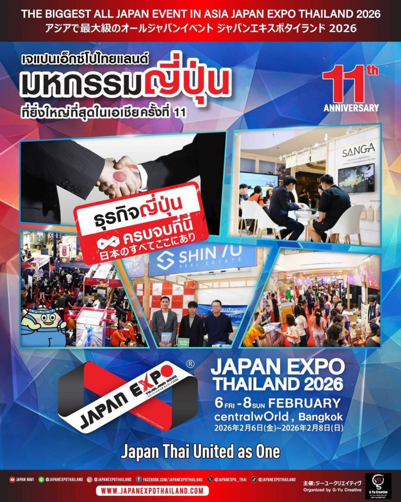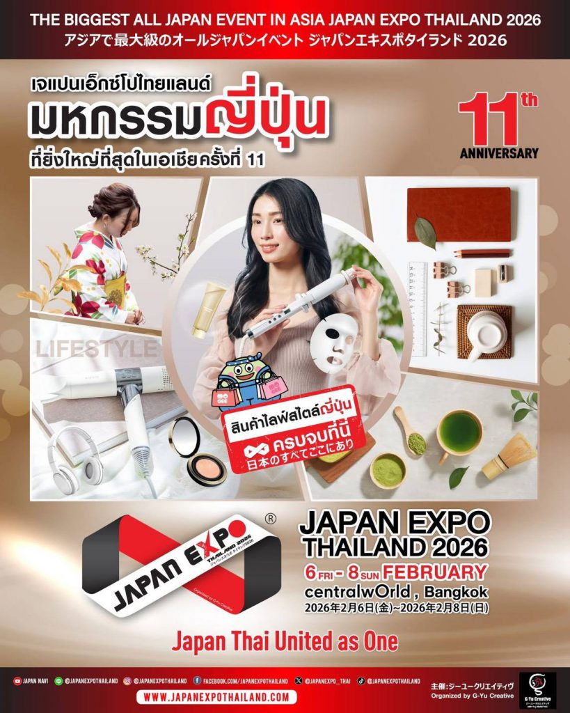 การกลับมาของงานมหกรรมญี่ปุ่นที่ยิ่งใหญ่ที่สุดในเอเชีย!! JAPAN EXPO THAILAND 2026 จัดโดย บริษัท จี-ยู ครีเอทีฟ จำกัด จำกัด พร้อมด้วยเหล่าพันธมิตรทั้งภาครัฐและเอกชน ร่วมมือกันสร้างงานมหกรรมญี่ปุ่นที่รังสรรค์ประสบการณ์เหนือระดับ เพื่อเฉลิมฉลองปีที่ 11 มหกรรมญี่ปุ่นที่ยิ่งใหญ่ที่สุดในเอเชีย JAPAN EXPO THAILAND 2026 ระหว่างวันศุกร์ที่ 6 ถึงวันอาทิตย์ที่ 8 กุมภาพันธ์ 2569 เต็มอิ่มตลอด 3 วันเต็ม ตั้งแต่เวลา 10.00-21.00 น. ณ ศูนย์การค้าเซ็นทรัลเวิลด์