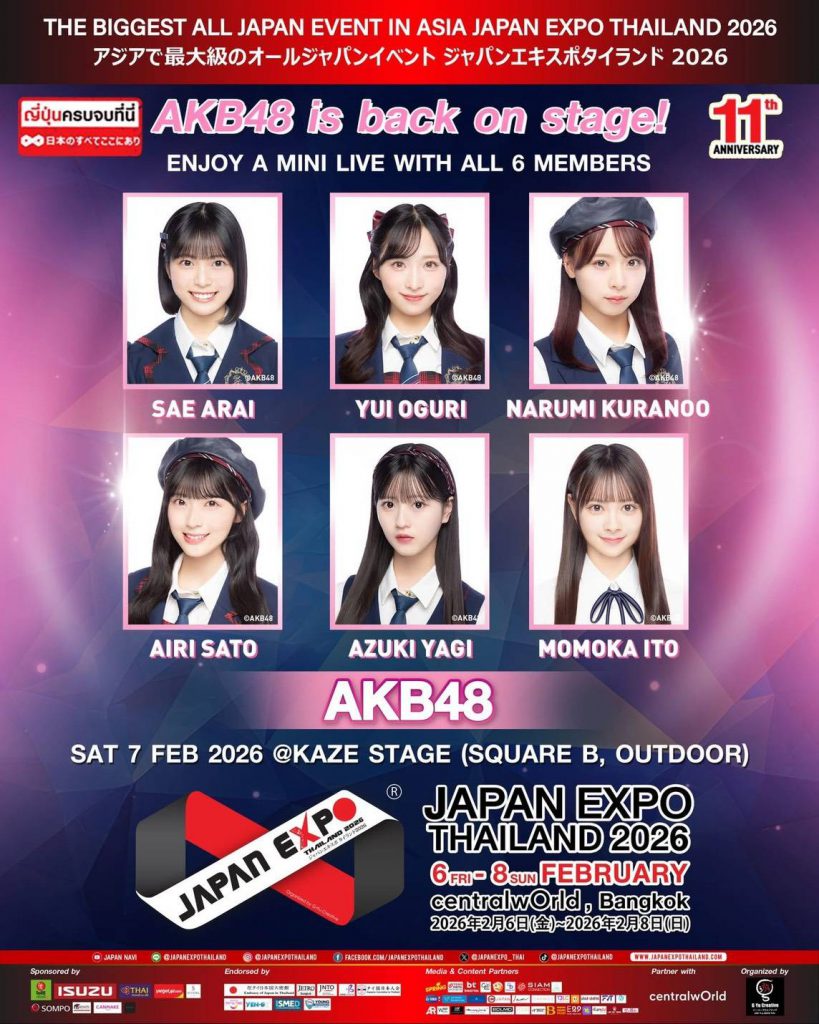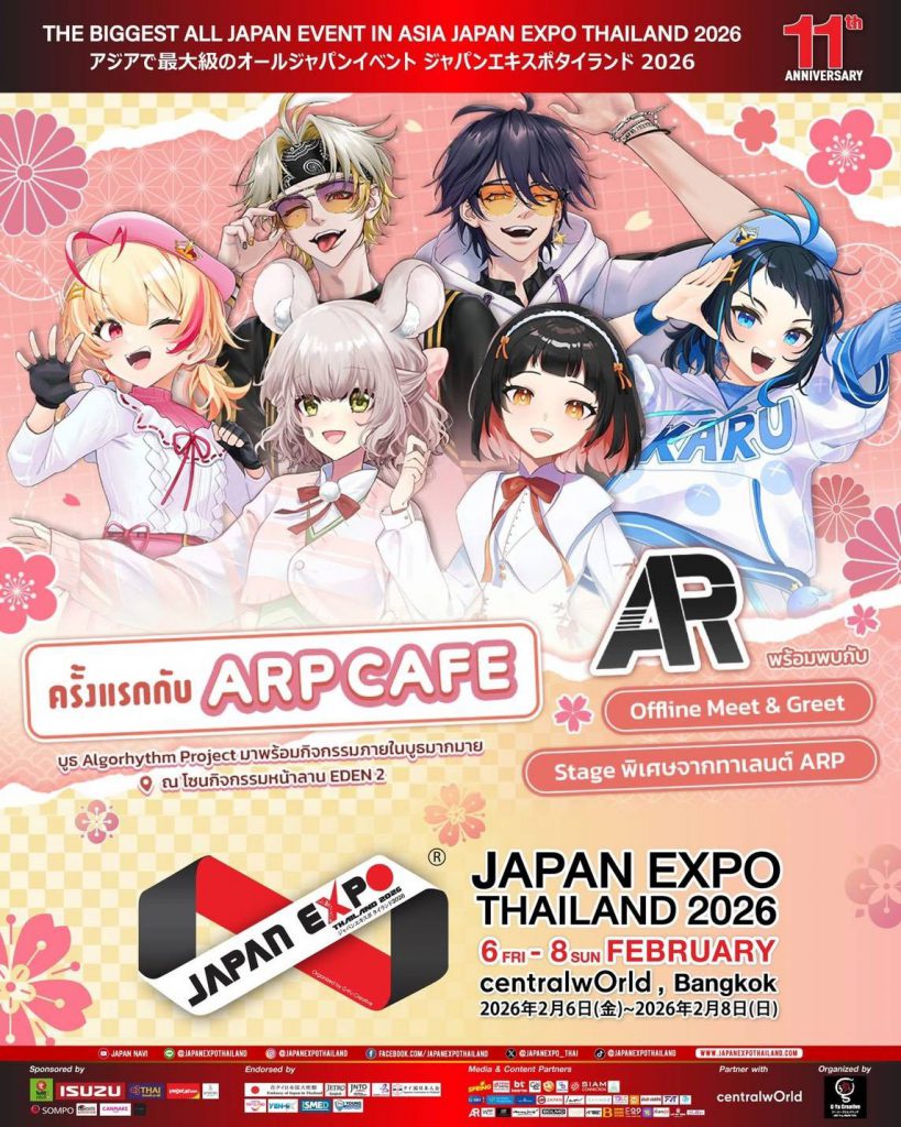 JAPAN EXPO THAILAND 2026 – 11 ปีแห่งความสัมพันธ์ไทยญี่ปุ่น โดยJAPAN EXPO THAILAND ก้าวเข้าสู่ปีที่ 11 อย่างยิ่งใหญ่ ภายใต้ธีม “Japan Thai United as One – ญี่ปุ่นไทยรวมใจเป็นหนึ่งเดียว” รวบรวมความเป็นญี่ปุ่นในทุกมิติทั้งวัฒนธรรม ดนตรี แฟชั่น อาหาร เกม และเทคโนโลยี Soft Power จากญี่ปุ่นสู่ใจกลางกรุงเทพฯ ระหว่างวันที่ 6 – 8 กุมภาพันธ์ 2569 ณ ศูนย์การค้าเซ็นทรัลเวิลด์ ตั้งแต่เวลา 10.00 – 21.00 น. เต็มอิ่มตลอด 3 วัน