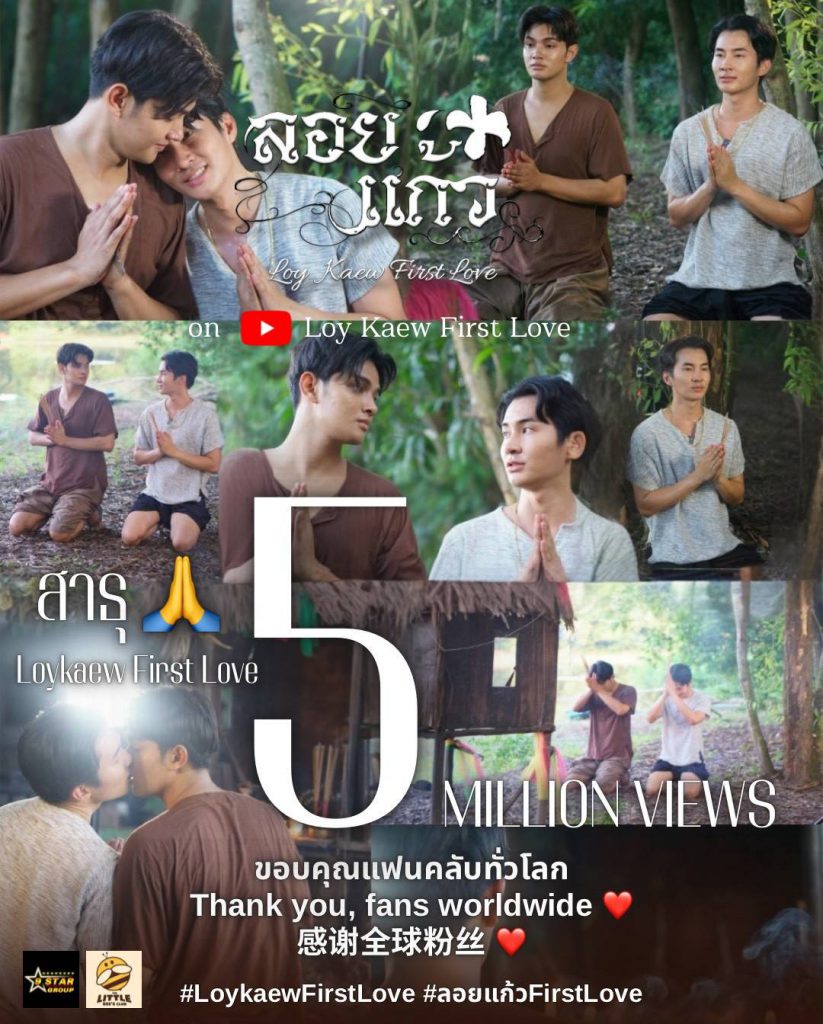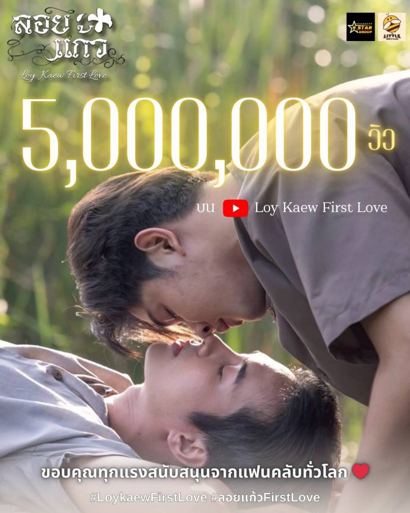 กลายเป็นอีกหนึ่งซีรีส์วายที่ได้รับกระแสตอบรับอย่างอบอุ่น สำหรับ “ลอยแก้ว First Love” ที่ล่าสุดยอดรับชมบน YouTube ทะลุ 5 ล้านวิว เป็นที่เรียบร้อย สร้างความปลื้มใจให้กับผู้จัดและทีมงานอย่างมาก