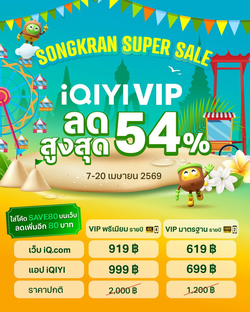 ต่อที่สอง: เพียงใส่โค้ด “SAVE80” บนเว็บ iQ.com รับส่วนลดเพิ่ม 80 บาท เหลือเริ่มต้นเพียง 51 บาท/เดือน ตั้งแต่วันที่ 7–20 เมษายน 2569 กดสมัครเลย 👉 iq.com/vip/order
