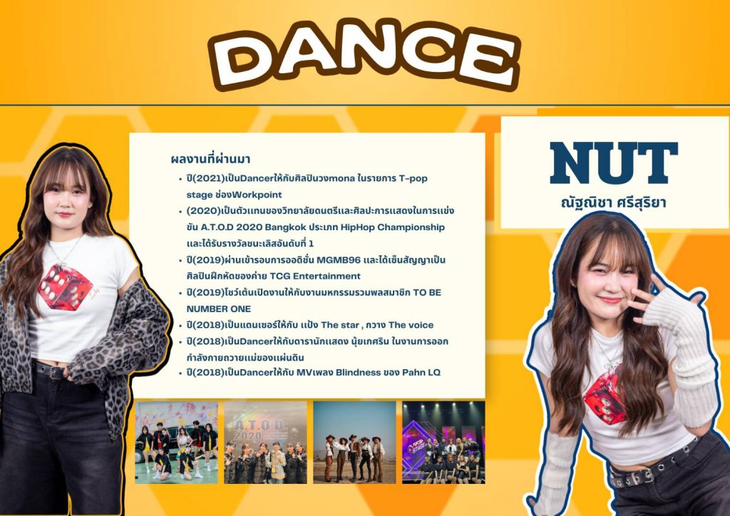 ครูนัท เคยร่วมงานกับศิลปิน T-POP บนเวทีระดับประเทศ อาทิ รายการ T-POP Stage ช่อง Workpoint และยังเป็นตัวแทนเข้าร่วมการแข่งขัน A.T.O.D Bangkok HipHop Championship 2020 คว้ารางวัลชนะเลิศอันดับ 1 รวมถึงผ่านการออดิชั่น MGMB96 และได้เซ็นสัญญาเป็นศิลปินฝึกหัดในสังกัด TCG Entertainment