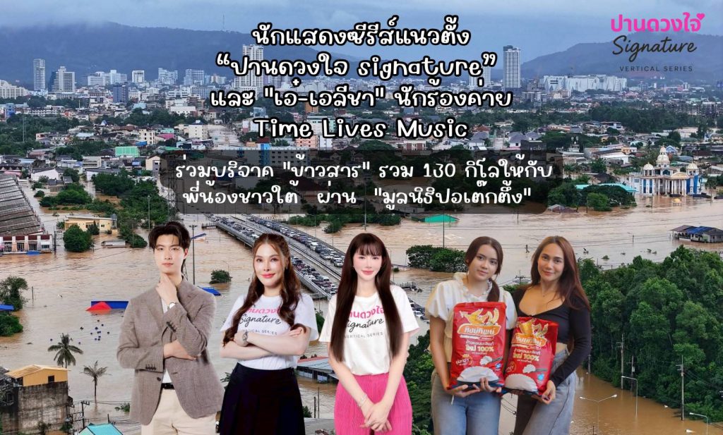 นักแสดงซีรีส์แนวตั้ง “ปานดวงใจSignature” อาทิ เกลิน ธัญรดี, ปิ๊งปิ๊ง รภัทร, คีธ กรินทร์, พรีเมียร์ ศรัญญา, เอ๋ เอลีชา นักร้องค่าย Time Lives Music ขอทำหน้าที่ “นักแสดงจิตอาสา” ร่วมบริจาค “ข้าวสาร” รวม 130 กิโลให้กับพี่น้องชาวใต้ผ่าน “มูลนิธิปอเต๊กตึ้ง” และขอให้พี่น้องชาวใต้กลับมาใช้ชีวิตเป็นปกติสุขโดยเร็วที่สุด
